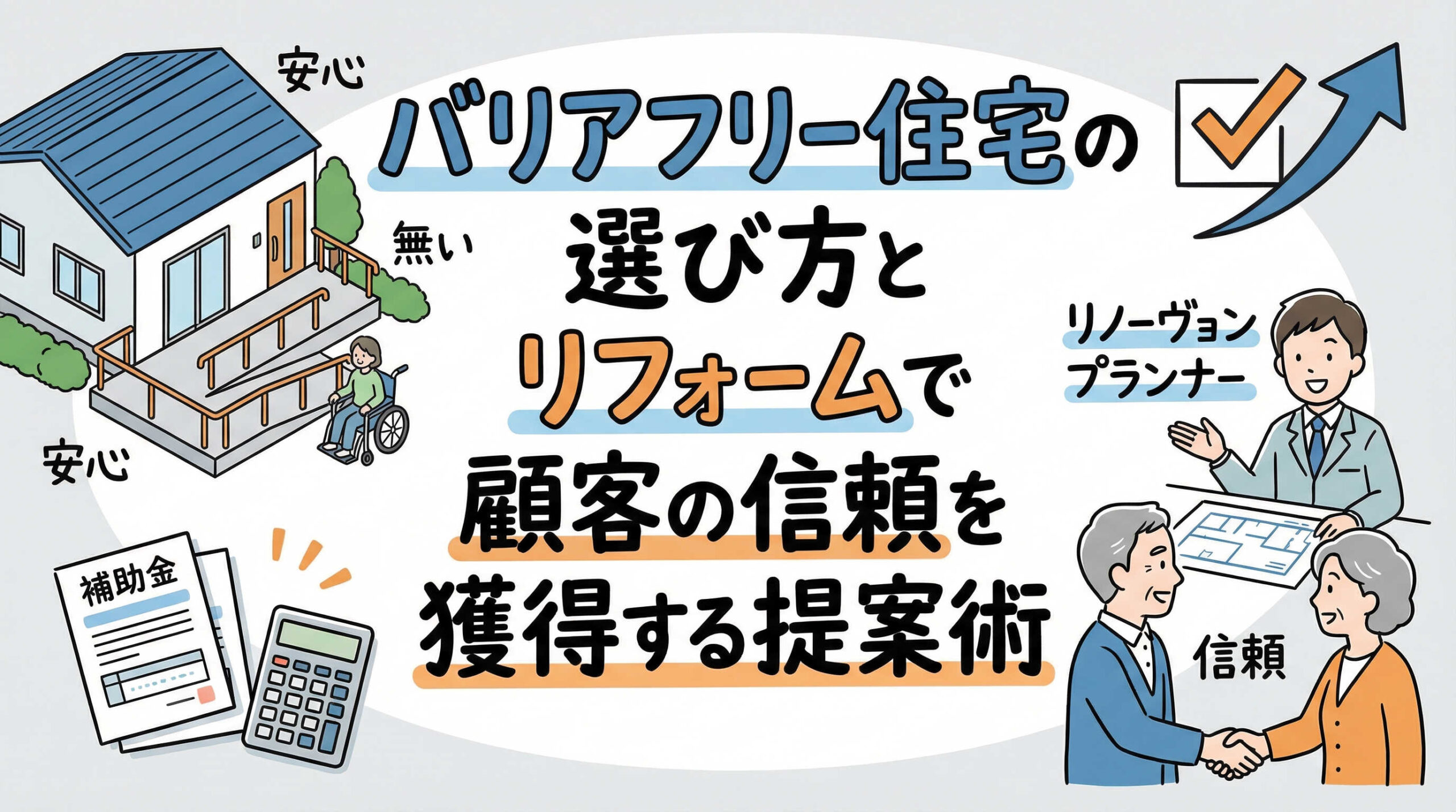 本記事では、不動産のプロフェッショナルとして押さえておきたい「バリアフリー住宅の選び方とリフォームポイント」を体系的に解説します。現地調査で見るべき具体的なチェックポイントから、成約率を高める資金計画の提案、さらには施工上の注意点まで網羅しました。顧客の信頼を獲得し、最適な住まいを提案するための一助としてご活用ください。
